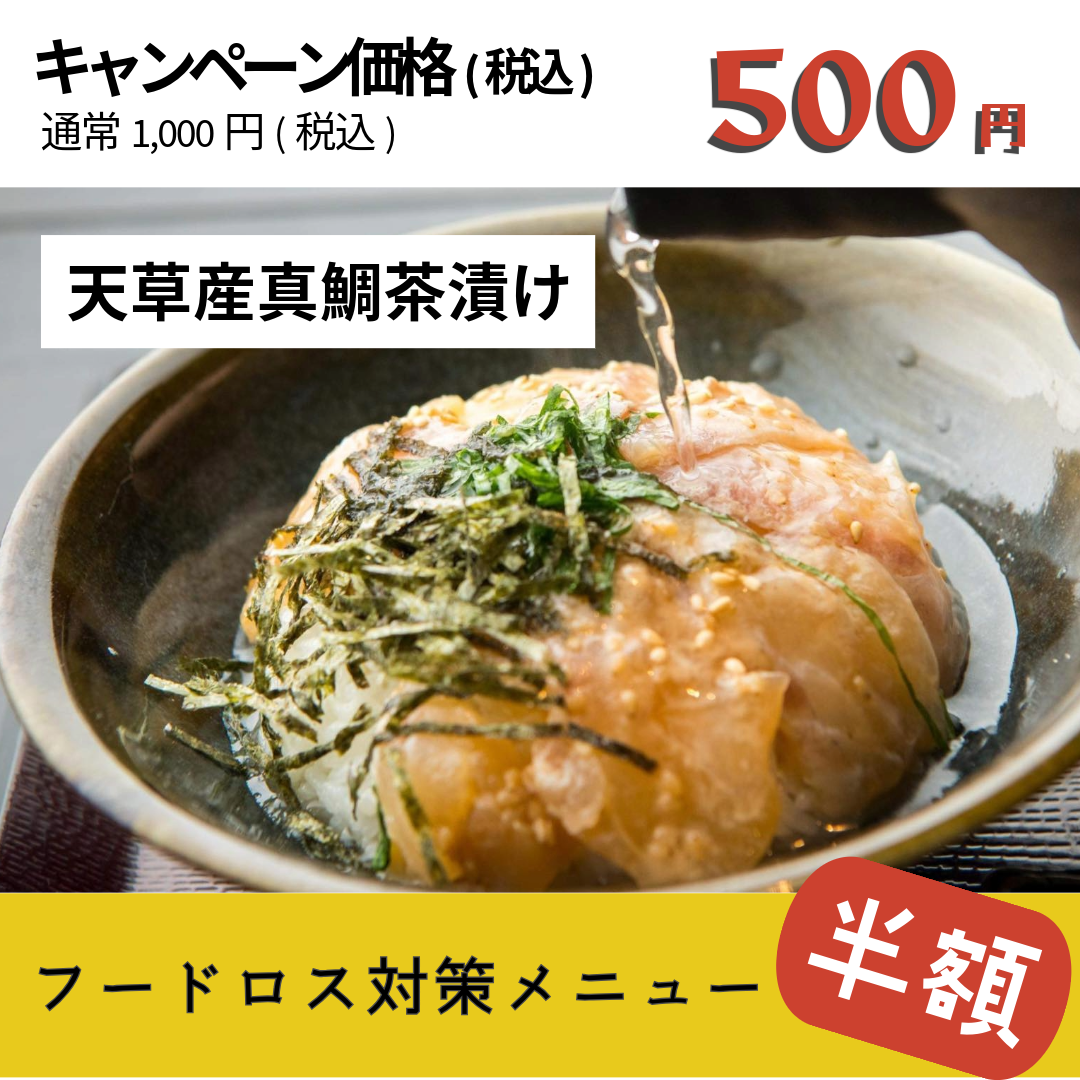 期間中天草産水産物のフードロス対策メニューを半額でご提供
